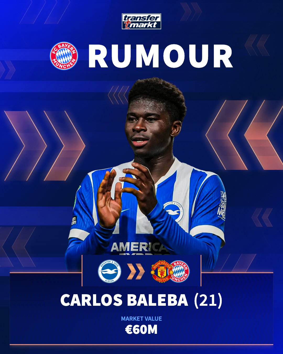 拜仁与曼联均对布莱顿的中场球员巴莱巴展现出了浓厚的兴趣